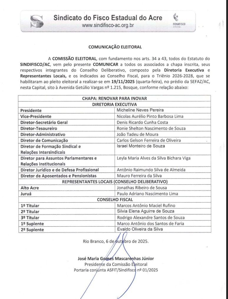 Comunicação Eleitoral SINDIFISCO – Comunicação chapa inscrita _ eleições 2025 Compartilhe isso:Clique para compartilhar no Twitter(abre em nova janela)Clique para compartilhar no Facebook(abre em nova janela)Curtir isso:Curtir Carregando... Relacionado